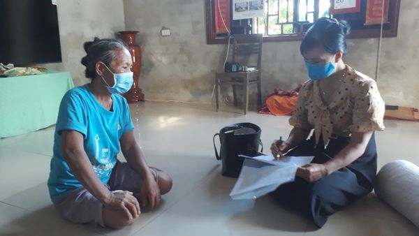 Khảo sát viên thực hiện phỏng vấn người dân địa phương
